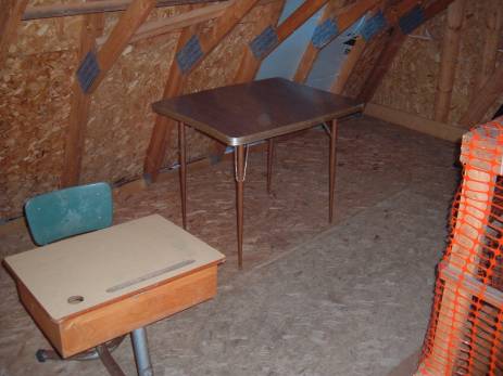 enter the loft. There is a child's desk for colouring, a games table,